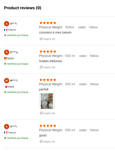 Our products undergo strict compliance inspections regarding fragrance quality and ingredient safety during the manufacturing process. Therefore, you do not need to worry about customers complaining to you about olfactory discomfort or product safety issues. You can purchase with complete confidence